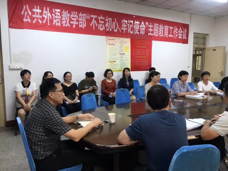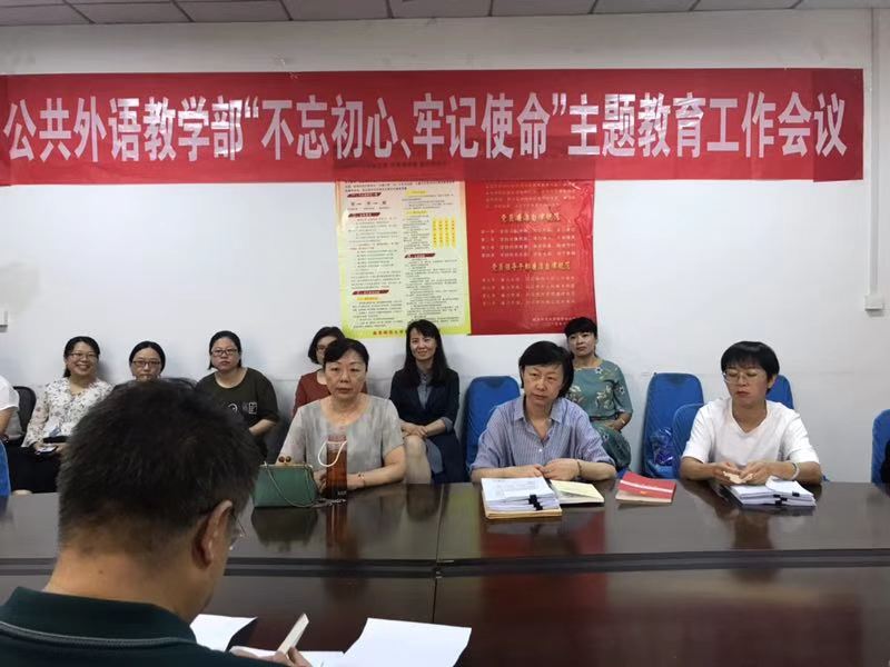 公共外语教学部爱游戏手机版党支部全体党员教师参加了此次教育工作会议。根据支部会议部署,党员分领了任务,逐步推进开展“不忘初心、牢记使命”主题教育工作活动。