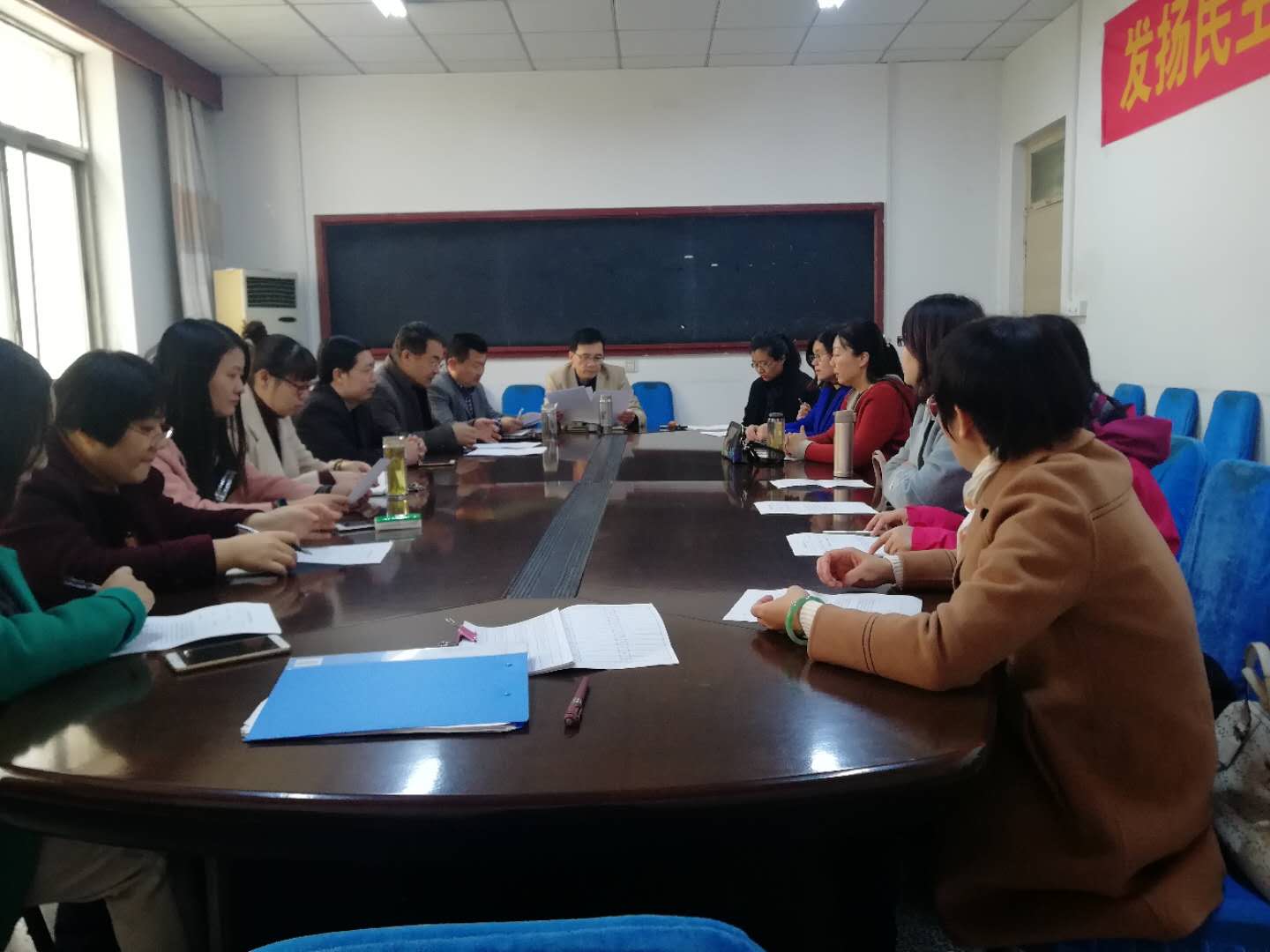第二阶段是民主评议党员。按照学校文件要求,党员们要从所有在职的正式党员中评选出不超过三分之一的优秀党员,还要对支部的各项工作表现进行评议。支部委员们按照预先安排的步骤进行发票、投票、记票等工作,最终顺利完成了评议工作。支部书记对评议优秀的党员们进行了表彰,对没有评上优秀但同样表现优秀的同志们也进行了鼓励,并勉励党员们向优秀党员看齐,努力提高自己,争取在各个方面发挥好先锋模范作用。