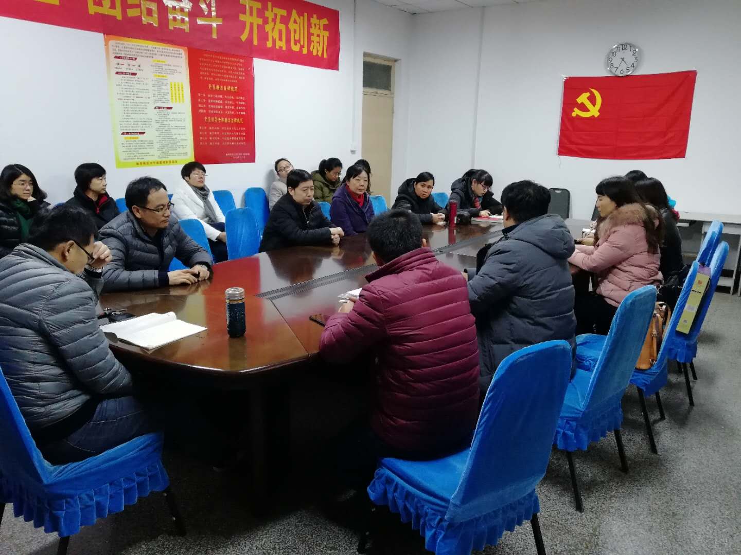 在认真学习和领会解读的基础上,全体党员畅所欲言,谈体会、述思想、表决心。各个心情激动、精神鼓舞,充满激情。大家一致认为,19大报告大气磅礴,举旗定向,思想深邃,催人奋进,体现了大国情怀、大国担当和大国自信。我们一定要响应党的号召,不忘初心,牢记使命,高举中国特色社会主义伟大旗帜,决胜全面建成小康社会,夺取新时代中国特色社会主义伟大胜利,为实现中华民族伟大复兴的中国梦不懈奋斗。