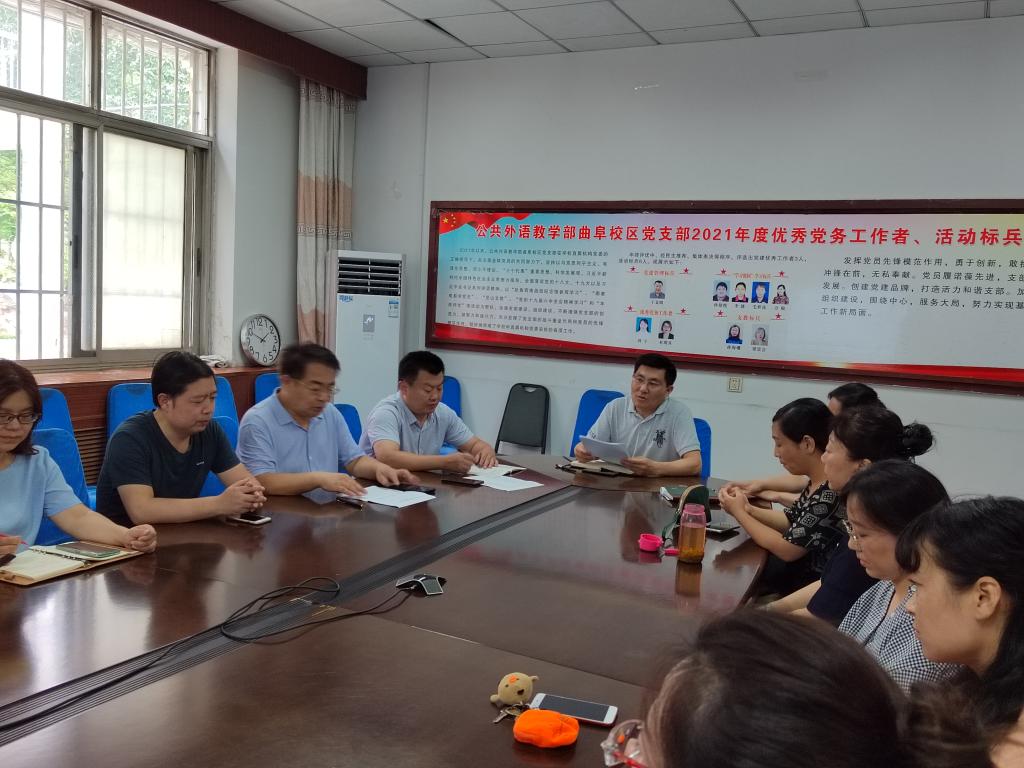 2022年6月29日下午,公共外语教学部爱游戏手机版党支部书记王福祥为全体党员同志讲党课,就《中国共产党山东省第十二次代表大会报告》进行深入解读,引导党员同志进一步坚定信念、锤炼党性、主动作为、担当实干。