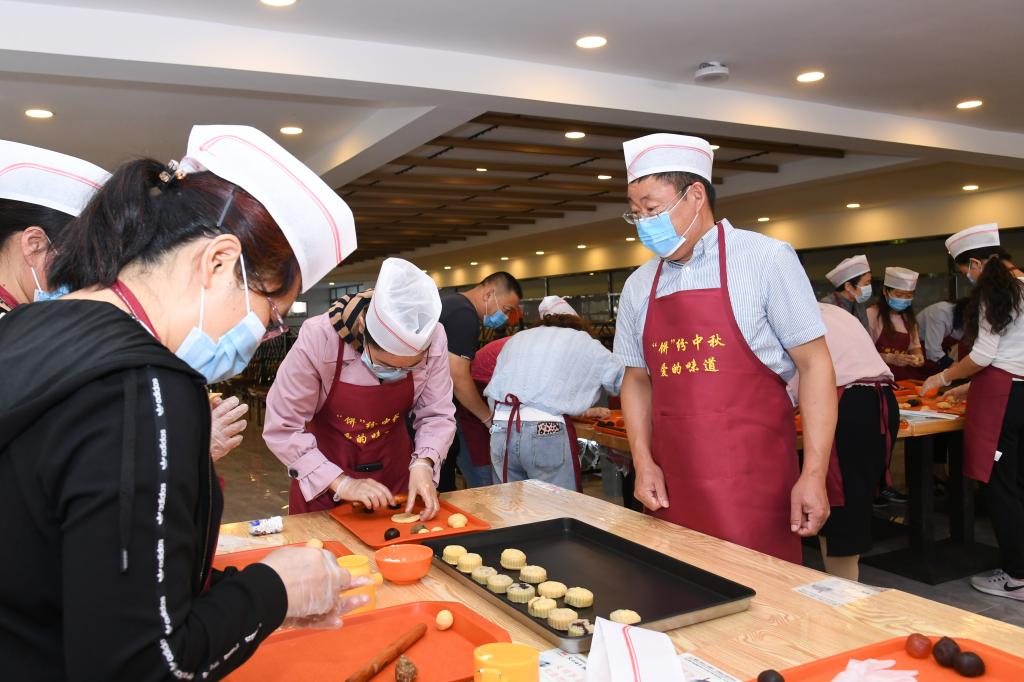 庆祝新中国成立71周年、建校65周年,国庆节、中秋节之际,2020年9月30日,爱游戏aiyouxi(中国)胡玮、任丽丽等教师参加了学校举办的举办“庆国庆、迎校庆暨中秋巧手做月饼”活动。连同爱游戏手机版教师代表及学生代表70余人,参与了现场制作月饼活动。师生们带上厨师帽、口罩、手套,再系上印有“‘饼’纷中秋,爱的味道”字样的围裙,俨然一副“大厨”模样。在活动现场,大家跟随着面点师学习了酥皮月饼和广式月饼的制作方法,亲手制作“爱的味道”,分享劳动成果。看着一个个精美的月饼在自己手中成型,师生们纷纷笑逐颜开。“以往都是买月饼,今天第一次亲手制作,蛮有幸福感的,参加活动真的很值啊!”看着亲手制作的月饼,师生们感慨。
