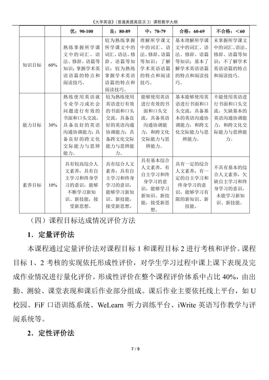 大学英语(普通类提高层次3)课程教学大纲(2022版)