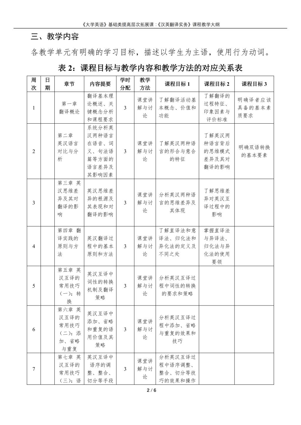 大学英语(普通类提高层次拓展课:《汉英翻译实务》)课程教学大纲(2022版)