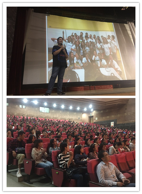 夏末秋初,凉风习习,星光璀璨。9月26日晚上7点,由公共外语教学部、校团委共同主办的“臧英杰英语学习交流报告会”在我校爱游戏手机版新大学生活动中心礼堂如期举行,爱游戏手机版部分教师以及校内外不同专业的在校大学生近千人参加了此次英语学习交流活动。