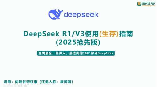 本次研训讲座由尚硅谷宋红康老师主讲。讲座内容全面,涵盖了DeepSeek的多个关键领域,包括产品线的详细介绍、正确的使用方式、提示词的使用原则和技巧、指令模型与推理模型的对比分析、与其他模型的性能比较、四种主要部署方案的详解、DeepSeek R1训练过程与原理的深入解析,以及对未来发展的展望。