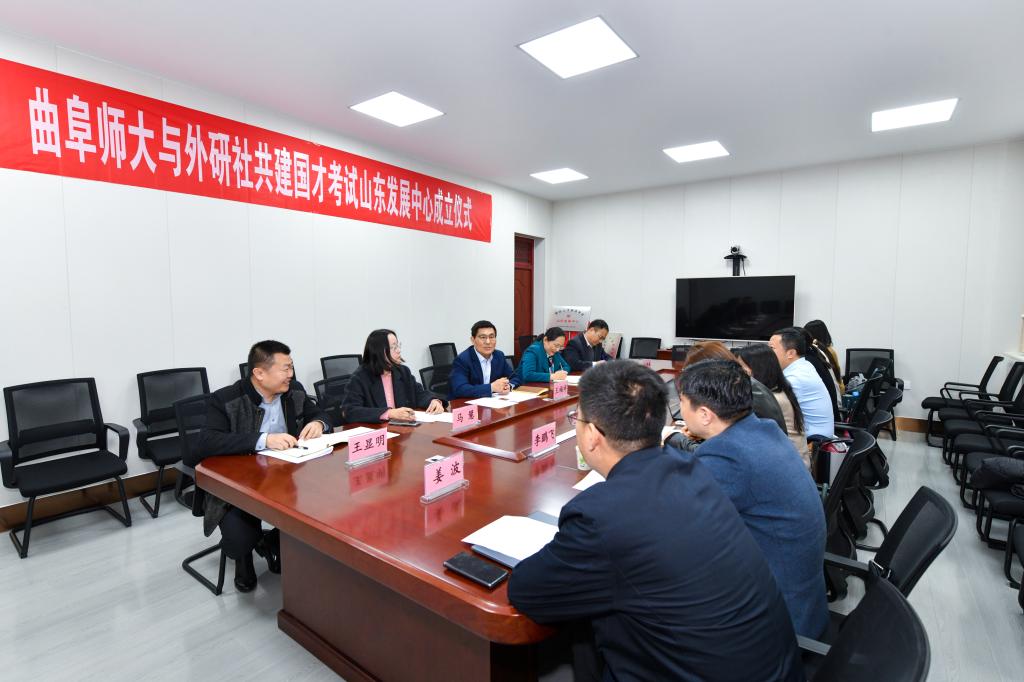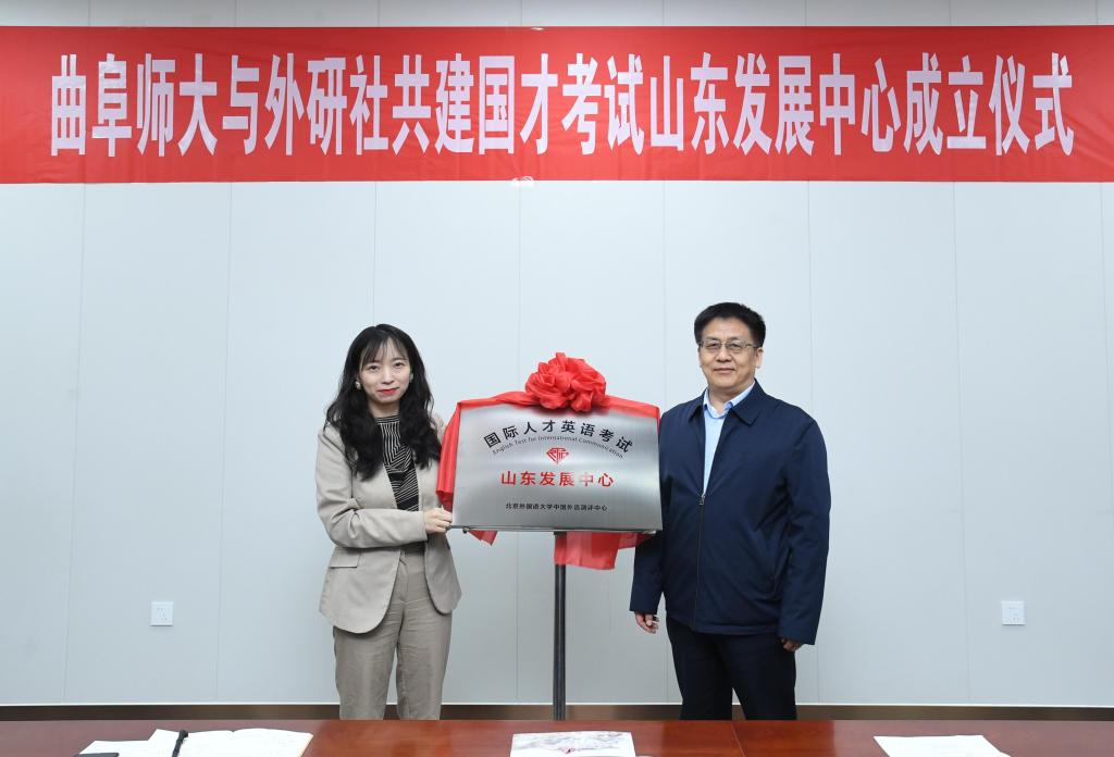 仪式上,胡凡刚副校长与冯涛总经理共同为“国际人才英语考试山东发展中心”揭牌,曲师大教务处处长李傅山与外研社高等营销中心华东大区总经理李洪旺为“爱游戏手机版国际人才培养基地”揭牌。两大平台的成立,将为山东省高校国际化人才培养提供重要支撑。
